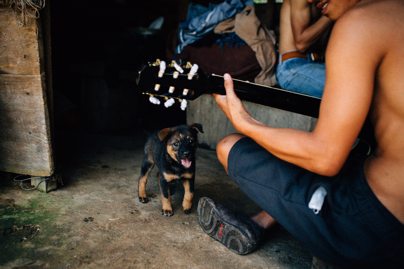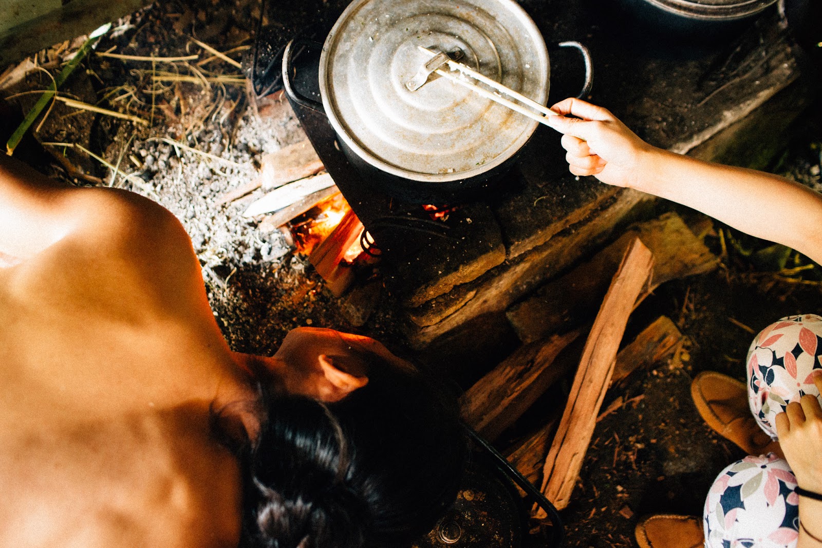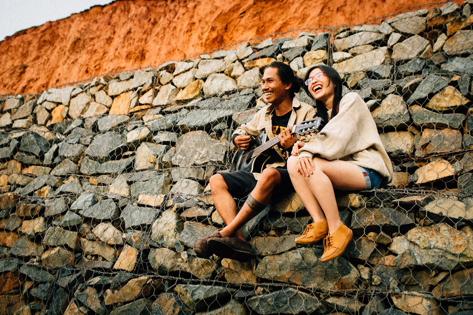 Tối kiếm củi đốt lửa nướng gà, đàn hát cho nhau nghe.