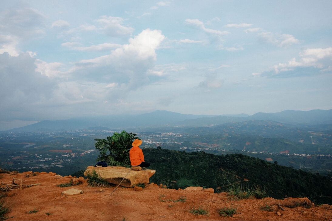 Và hôm ấy, sau khi lắng nghe câu chuyện, mình cùng bạn leo lên ngọn núi này, ngắm nhìn nơi mình sống từ trên cao.